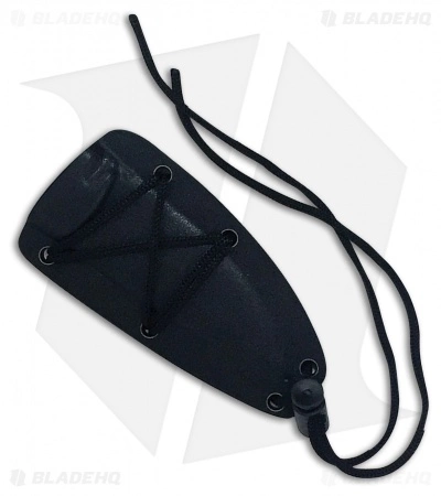 - Includes a black molded sheath and a lanyard cord.