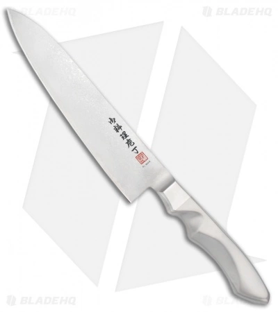 The Al Mar Ultra-Chef™ series offers outstanding edge retention and incredible strength for use in the kitchen. This 8″ Damascus Gyuto knife features a lightweight build and a blade hand sharpened to an incredible edge. Its one piece handle is made from stainless steel with ergonomic curvature for a more enjoyable kitchen experience.