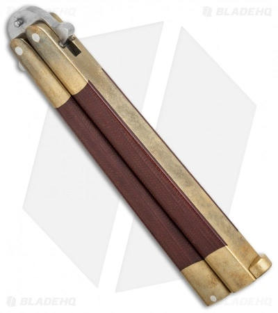 This Bali-Song model features an Imada high hollow ground blade and brass handles with red rag Micarta inlays.