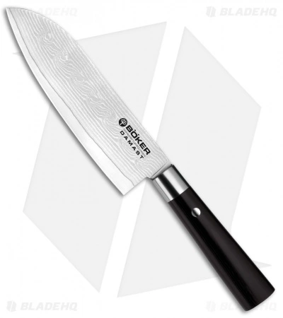 Boker’s Damascus Black and Damascus Olive kitchen lines exhibit beauty and breathtaking cutting capability. The secret to their performance lies in the composition of their blades: 37 layers of Damascus steel with a high-impact VG-10 core, which bears the sharpened edge. VG-10 is a tough, Japanese-made stainless steel capable of becoming and remaining extremely sharp. Each knife is handmade after a traditional Japanese style in Solingen, German, by Boker’s experienced craftsman. They are available with either a black or olive wood handle. Boker Damascus will elevate your cooking experience, making you smile from the very first slice.