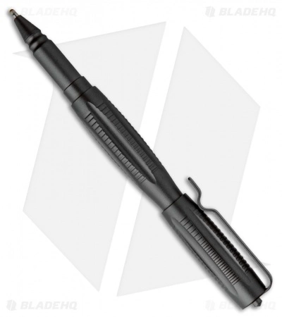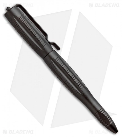 The Boker Click-On pen offers a new cap that doesn’t use threads, but “clicks-on,” making the pen easier to open and more comfortable to use. This model comes with a black finished aluminum body with aggressive texturing. The pen clip is held on by a glass-breaker tip.