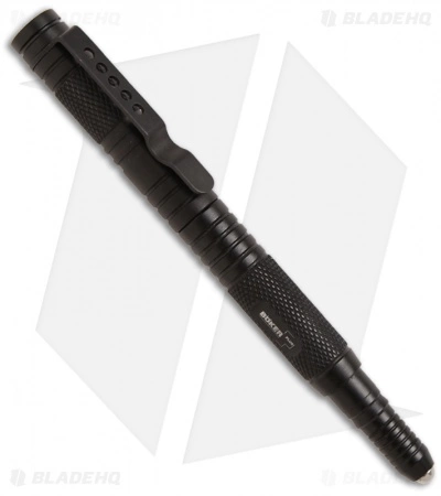 The Boker Plus Tactical Pen is a superb writing and self-defense implement with a hard, rounded stainless steel insert on the shaft end, which allows it to be used as a Kubotan. The body is black anodized aluminum with a checkered grip and cap to provide a secure grip. The cap is precision threaded and is secured by an internal o-ring. To write, the optional cap can be easily slipped back to the stylus.