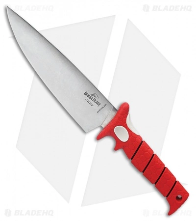 The Bubba Blade Chef’s knife offers a tough and durable design for all of your kitchen needs. This model has a 6″ blade and a no-slip red TPR handle.