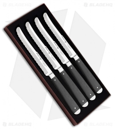 The Case Steak Knife set of 4, with ebony handles is comfortable on any dinner table. With a 5″ blade length and Miracl-edge serrations, you’ll be able to slice into your favorite meal with ease!