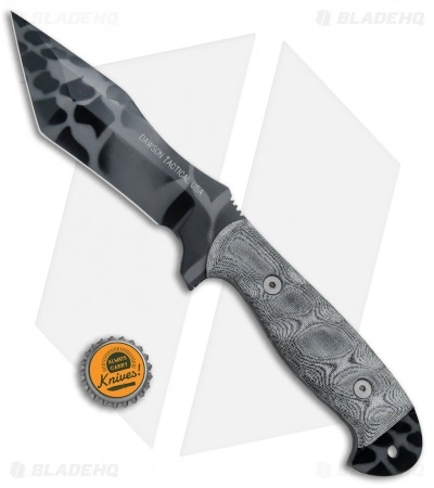 This Wraith model features an Obsidian Cerakote finished blade and gray Micarta handle scales. The Wraith from Dawson Knives is a mid-sized tactical fixed blade with a modified tanto blade made from 80Crv2 alloy steel. Its handle is fitted with grooved Micarta scales for a firm grip in any environment. Item includes a Typhon Kryptec Kydex sheath and Tek-Lok attachment.