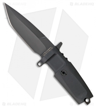 The 4.25″ Bohler N690 stainless steel hollow ground blade with large swedge is an excellent close combat tool. Comfortable black Forprene handle ensures a sure grip in hand. Includes black molded polymer sheath with Tek-lok for versatilecarry options.