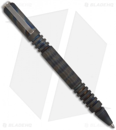 The Investigator Pen is a compact self-defense implement from Hinderer Knives. It is a smaller sized tactical pen for more discreet carry but with the toughness and styling cues of his kubaton and Extreme Duty pens for a firm grip when used in a CQB role. The Investigator Pen has a threaded bullet tip that is part of the modular design so that it can be customized with other attachments to fit the user’s specific needs. The threads for the cap and bullet are course and tall to handle hard strikes. The Investigator Pen uses a replaceable Fisher Space Pen cartridge.