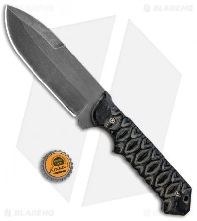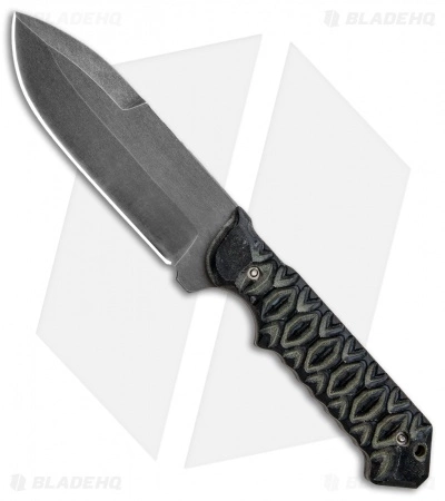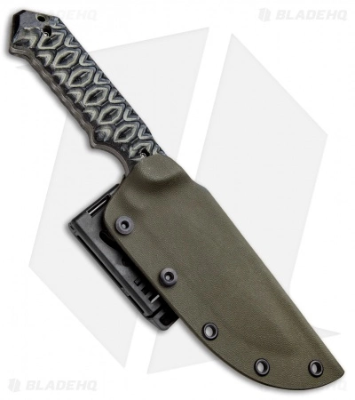With its tough, general-purpose spear point blade and fabulously comfortable handle, this fixed blade knife from J2 Knives is a winner. The blade is acid washed ATS-34 steel with a beefy 0.168″ thickness for tough chores. Diamondback pattern Micarta gives the user reliable grip without being overly harsh. An OD green Kydex sheath with belt attachment is included.