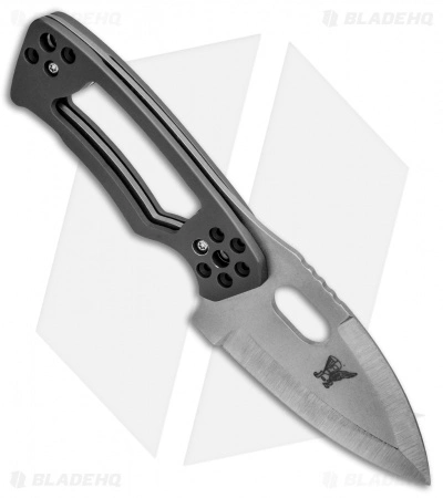 The J2 Knives Spear Point knife is a fantastically lightweight creation with full-titanium construction. The full-tang blade is chisel ground and has a carbidized cutting edge. Darkened titanium scales are skeletonized and sport a revolver cylinder style pattern along with a hole for lanyard attachment.
