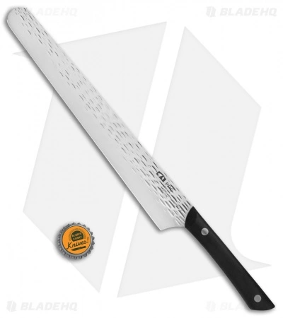 This KAI PRO Slicing/Brisket knife features a 12″ blade with a hammered finish and a black POM handle.