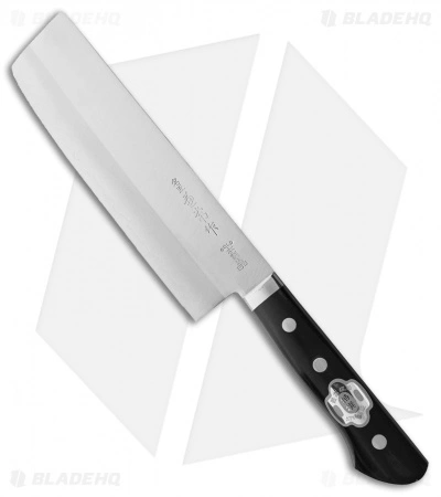 The Usubagata from Kanetsune knives features a VG-10 San Mai steel blade (HRC 60), Stainless Steel Bolsters, and an elegant smooth black wood handle.