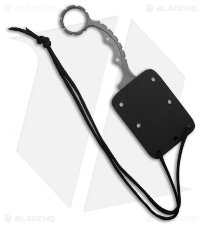 Now made with Nitro-V stainless steel, the DMax II is tough and corrosion resistant while maintaining a razor’s edge. Moving to a chisel ground cutting edge, the DMaX II’s tip is stronger, without sacrificing cutting or piercing performance. Comfortable and ergonomic in hand, the generous safety ring accommodates a variety of hand sizes while providing a secure grip. A matte bead blast finish features laser engraved branding for a durable, non-reflective surface. Shipped with a hand fitted kydex sheath, pre-strung for discreet neck carry.