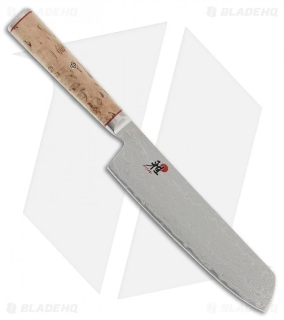 The Miyabi Birchwood 6.5″ Nakiri is a kitchen knife designed for slicing vegetables. Its straight edge and clean design make it efficient at cutting without forward or backward motion, just downward pressure. It is hand made in Seki, Japan, and has perfect fit-and-finish. The blade has a Damascus shell with a premium SG2 core, ice hardened to a perfect 63 HRC. This knife will exhibit great edge retention and wear resistance, and will be the focal point of your kitchen.