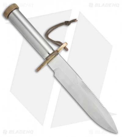 This vintage Model 18 Attack/Survival knife is from a collection. It’s in fantastic condition with only some light oxidation on the brass guard. Includes the original sheath. Hollow handle with threaded, o-ring sealed brass cap.
