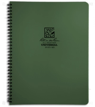 This large All-Weather notebook has green Polydura covers that feature a side spiral binding. It is 8.5″ by 11″ and has 42 sheets of lined Rite in the Rain paper, with a Universal page pattern. Defy mother nature with the All-Weather notebooks from Rite in the Rain.