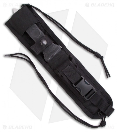 The blade is diamond ground with a black DuPont Teflon coating. The knife weighs in at just under one pound (390g) and is perfectly balanced in the hand. The handle features black “ERGO” scales. Includes nylon/Cordura sheath.