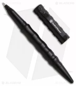This SWPEN Defense Pen from Smith & Wesson features a blue anodized aluminum body and cap. This lightweight pen is fluted and tapered to the striker base. The cap screws down to close and has a convenient pocket clip.