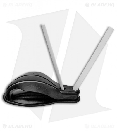 The Spyderco Gauntlet is an innovative sharpener that allows for quick and easy sharpening without a troublesome set up or complex motions. The base has an integrated handguard that ensures that your hand is protected while sharpening your knife. The specially designed rod holes allow you to rotate the rods to expose a fresh new sharpening surface.