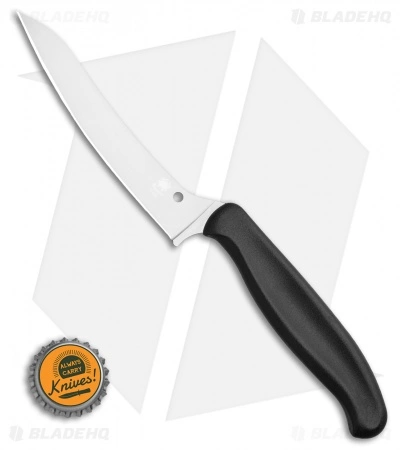 This Spyderco Z-Cut has a black handle and a pointed tip with a plain edge.