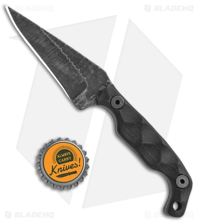 - Black stonewashed, hammer-finished modified drop point blade made from high carbon 1095 steel.