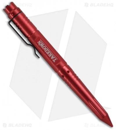 The Takedown DLX pen is a superb writing and defense implement. This DLX features a red anodized aluminum body with a crown head and pocket clip. The fluted grip aids in writing while the knurled section provides a solid gripping surface for defense applications. The cap pops on and off for quick and easy access. The pen writes well and includes both black and blue ink cartridges. If you need a replacement ink cartridge click here. This is another great Takedown self-defense tool in a package that makes it easy for everyday carry.