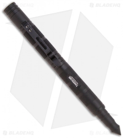 The Takedown Elite tactical defense pen is a 3-in-1 design that is equally capable as a writing instrument, self-defense implement or task light. This Takedown Elite features a black anodized aluminum body with a knurled grip and spike tip. The cap pops on and off both ends and features an LED light. To turn the light on just unscrew the cap partially. Includes pocket clip. The pen writes very well. If you should need a replacement ink cartridge click HERE. This is another great Takedown self-defense tool in a package that is perfect for everyday carry.
