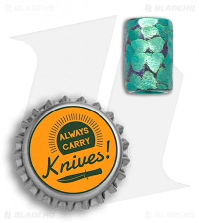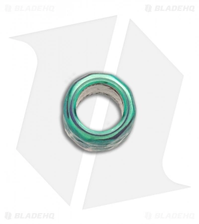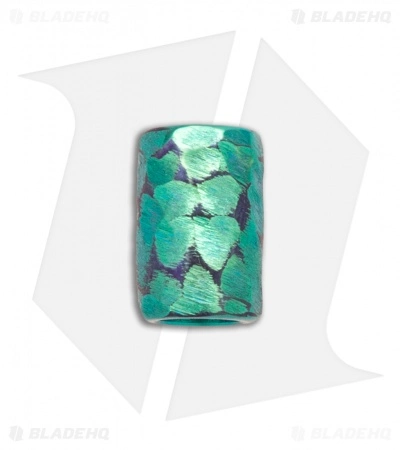 This hammered titanium lanyard bead from TiSurvival features a green anodized finish with light purple accents. It has a large 1/4 inch diameter hole. Whether you use this bead on a knife, flashlight, or zipper pull, it adds a special touch to your personal belongings.