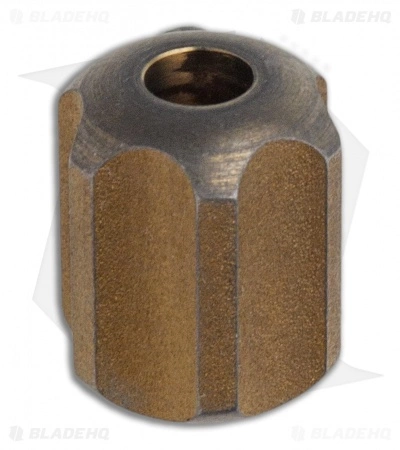 This titanium lanyard bead from TiSurvival has a bronze anodized finish. It has a large 1/4 inch diameter hole. Whether you use this titanium bead on a knife, flashlight, or zipper pull, it adds a special touch to your personal belongings.