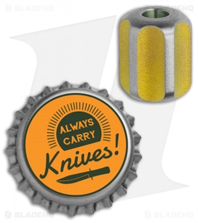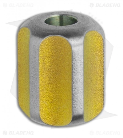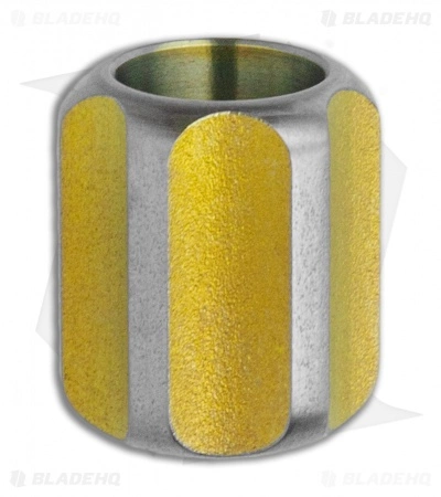 This titanium lanyard bead from TiSurvival has a yellow and natural titanium finish. It has a large 1/4 inch diameter hole. Whether you use this titanium bead on a knife, flashlight, or zipper pull, it adds a special touch to your personal belongings.