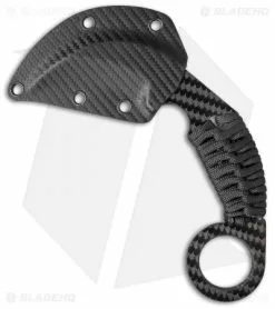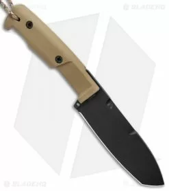 - D2 tool steel blade with a black finish and a textured flat grind.