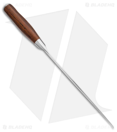This knife features a smooth wooden handle for a classic look and comfortable grip. The blade is stainless, meaning it requires no extra maintenance beyond sharpening.
