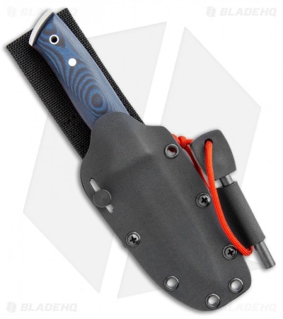 - Black and blue micarta handle looks great and feels amazing in the hand.