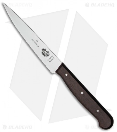 This Victorinox Rosewood Series has a blade stamped from cold-rolled steel, and has a bolster-less edge for use of entire blade and ease of sharpening. The spin on this classic Utility knife is the Rosewood handle material that is sanitary and great for use in any kitchen environment. Hand washing this knife is recommended. All Victorinox Swiss Army cutlery products are backed by a lifetime guarantee against manufacturer’s defects.