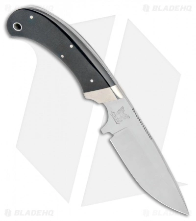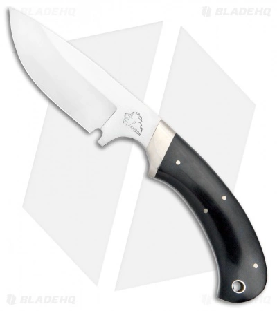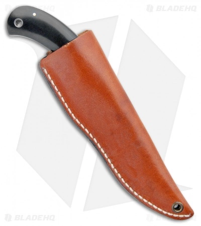 This vintage Pacific Cutlery/Bali-Song fixed blade knife is a classic in new condition. It’s got a drop point blade in a satin finish and a polished micarta handle. Item includes a leather sheath.