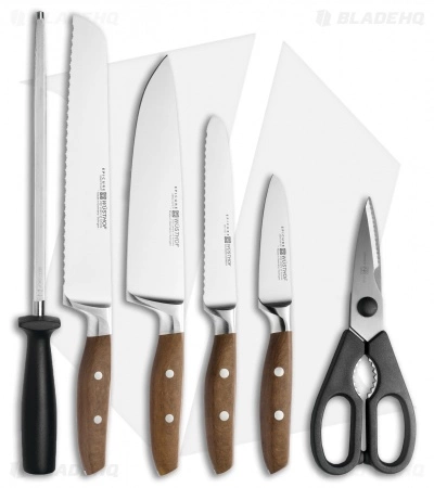 Why get just one? Display this six-knife set from Wusthof’s Epicure kitchen line in style with the included knife block. Each knife comes with a satin finished blade and a comfortable composite wood handle.