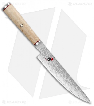 The Birchwood line from Miyabi is recognizable by the Damascus blades with SG2 cores and the raw birchwood handles. Please note: raw wood handles can absorb water and other liquids, causing damage to the knife. Take care to properly dry the knife after each cleaning.